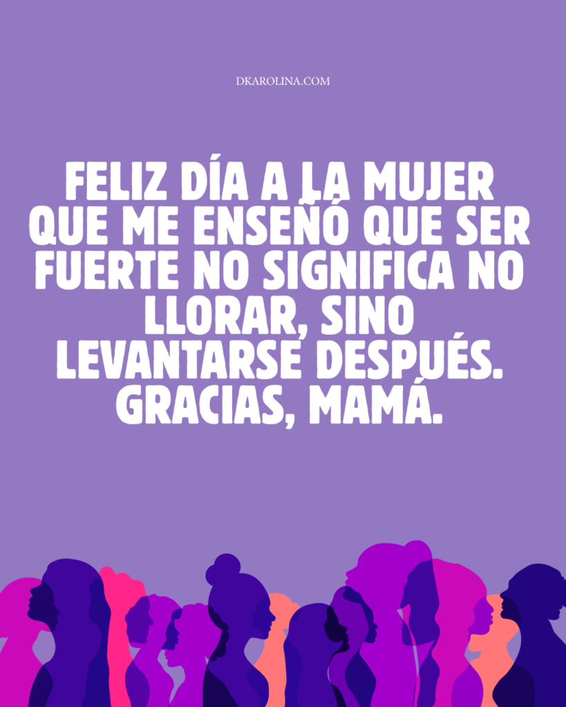 49.-Feliz día a la mujer que me enseñó que ser fuerte no significa no llorar, sino levantarse después. Gracias, mamá.