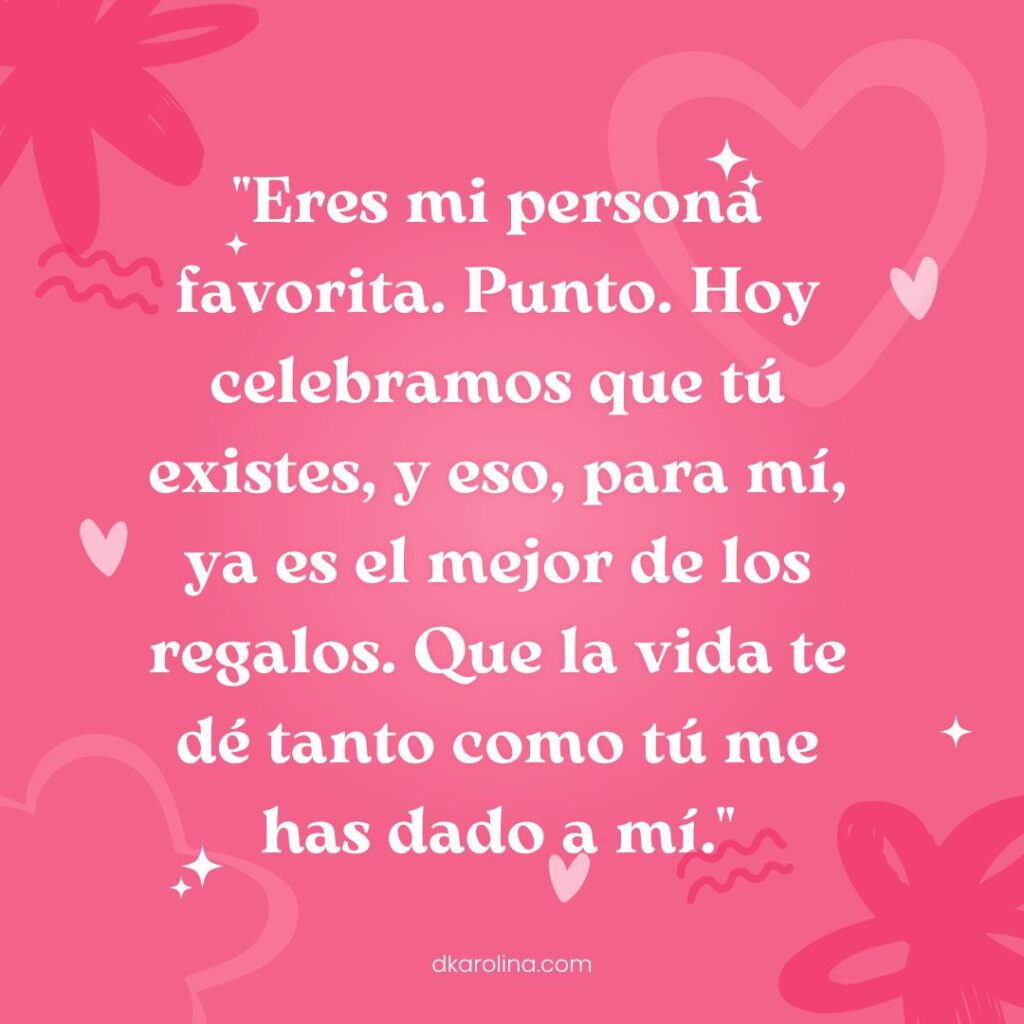 98.-«Eres mi persona favorita. Punto. Hoy celebramos que tú existes, y eso, para mí, ya es el mejor de los regalos. Que la vida te dé tanto como tú me has dado a mí.»