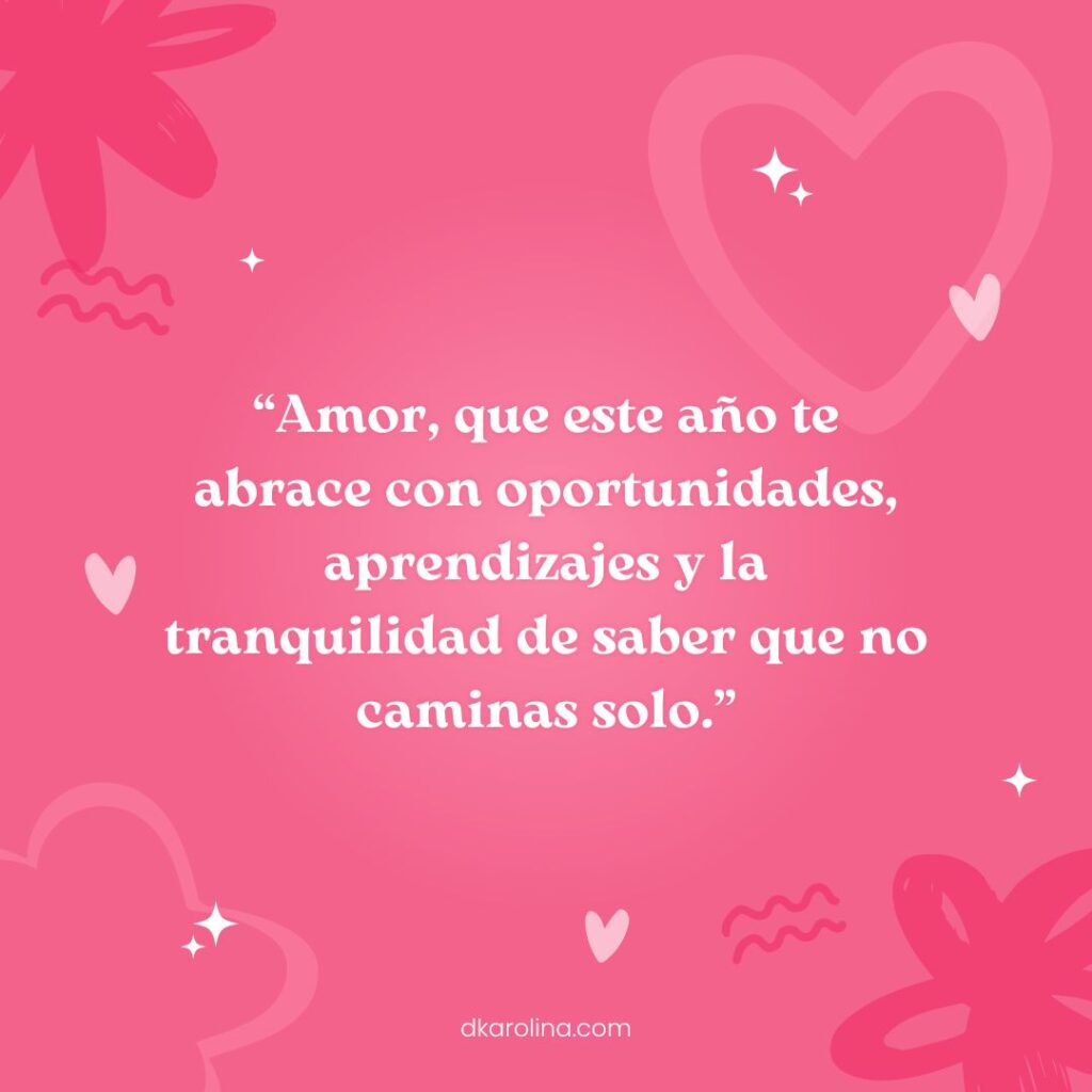 59.-“Amor, que este año te abrace con oportunidades, aprendizajes y la tranquilidad de saber que no caminas solo.”
