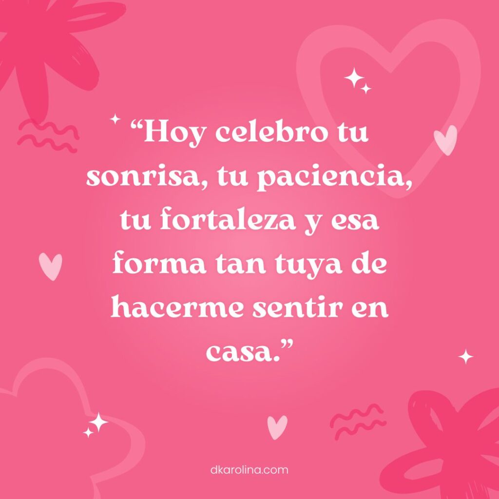 66.-“Hoy celebro tu sonrisa, tu paciencia, tu fortaleza y esa forma tan tuya de hacerme sentir en casa.”