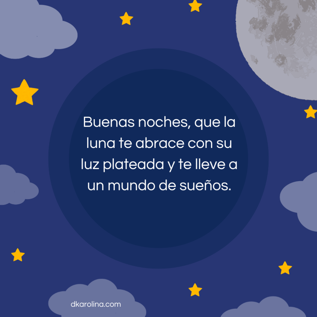 25.-Buenas noches, que la luna te abrace con su luz plateada y te lleve a un mundo de sueños.