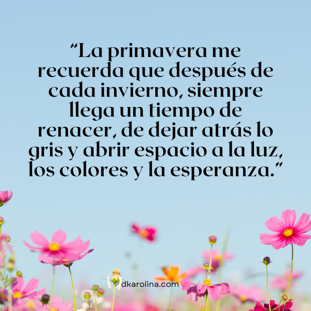 6.-“La primavera me recuerda que después de cada invierno, siempre llega un tiempo de renacer, de dejar atrás lo gris y abrir espacio a la luz, los colores y la esperanza.”