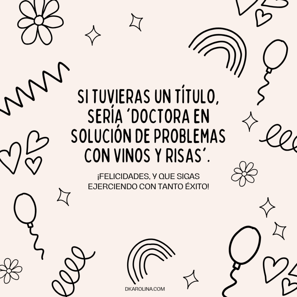 40.-Si tuvieras un título, sería ‘Doctora en Solución de Problemas con Vinos y Risas’. ¡Felicidades, y que sigas ejerciendo con tanto éxito!
