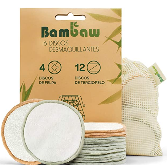 3.-Otra de las marcas favoritas es Bambaw, la cual nos trae 12 discos de bambú y cuatro discos de felpa, viene con un código QR en el cual se encuentra las instrucciones de como utilizarlo.